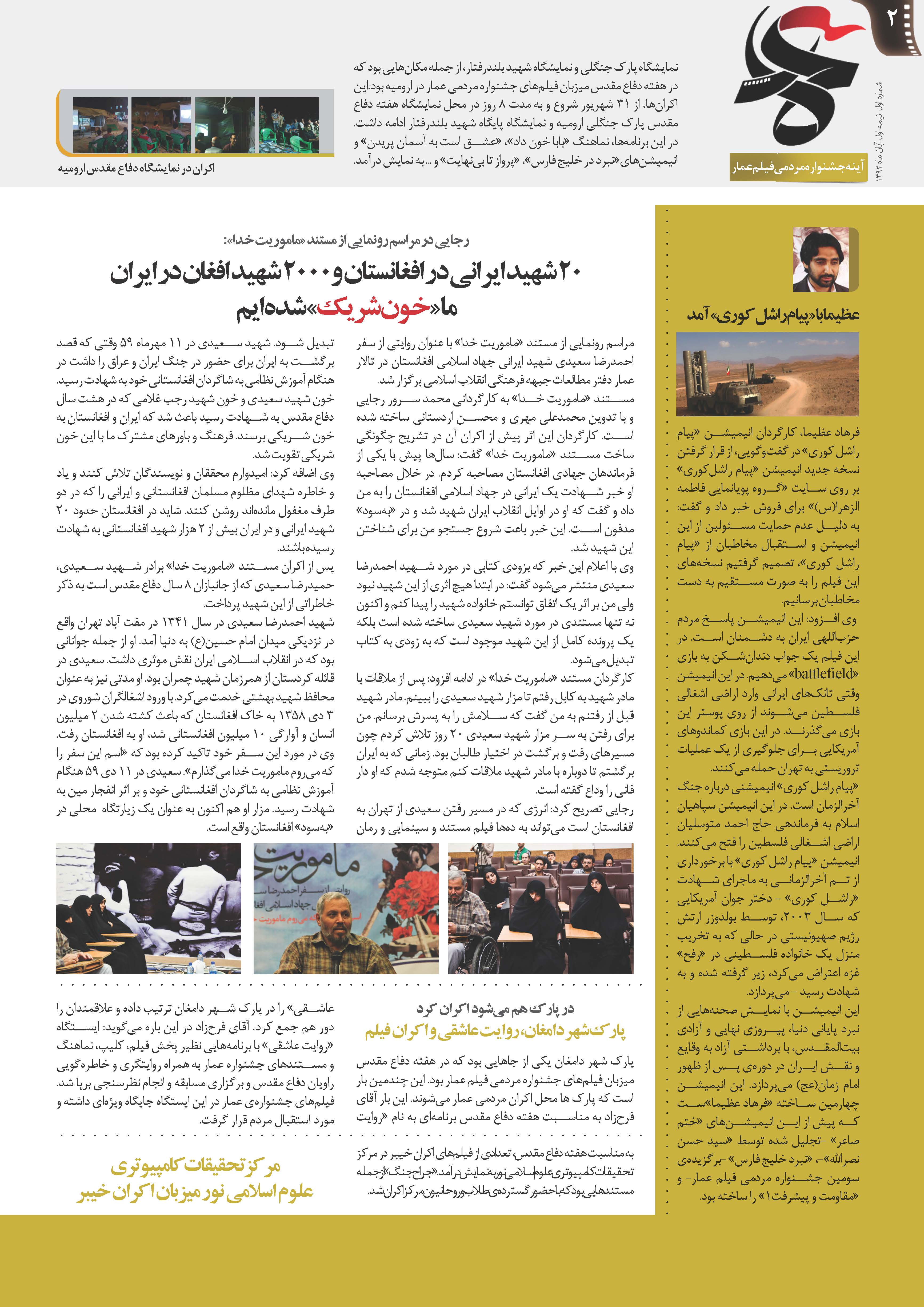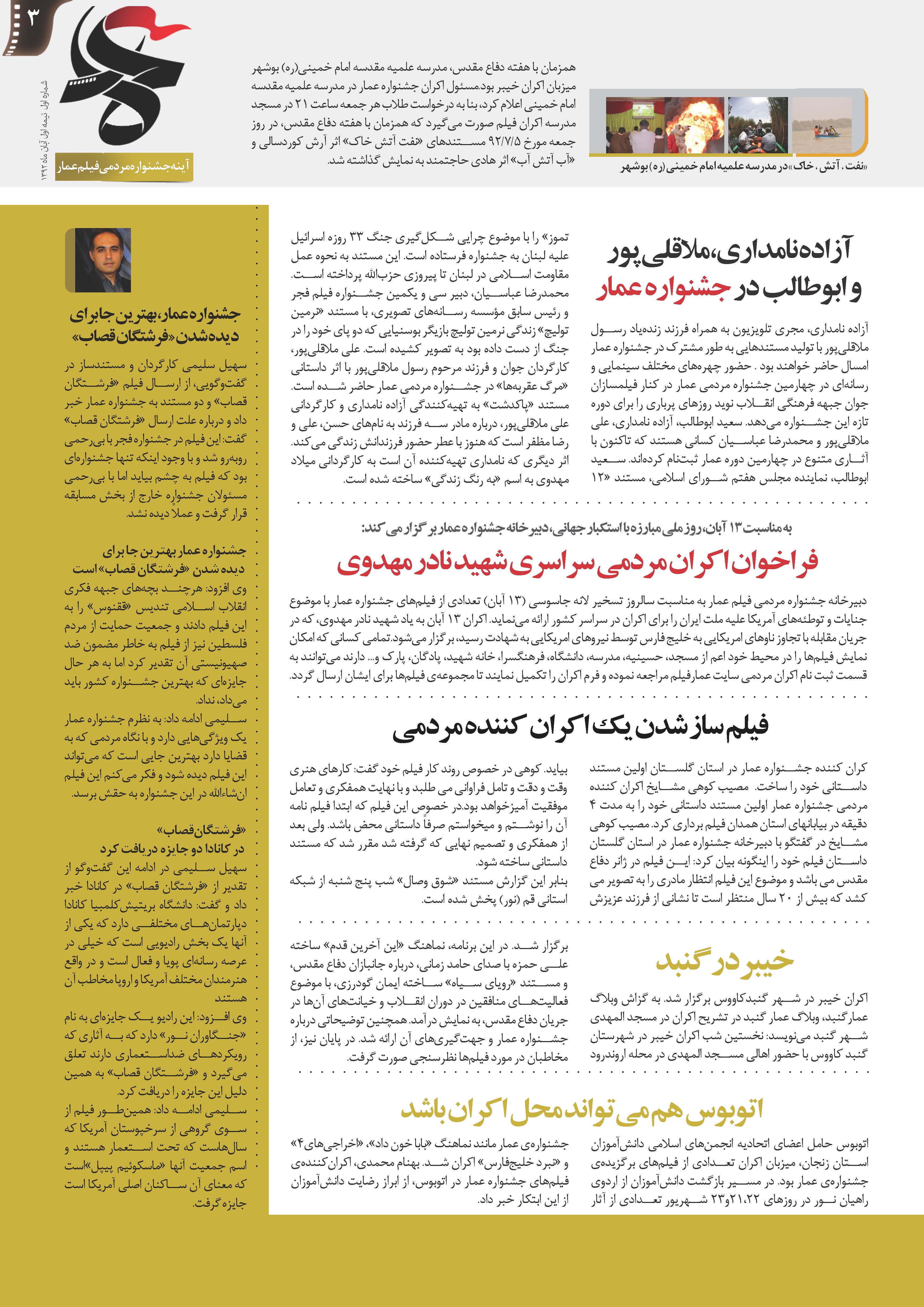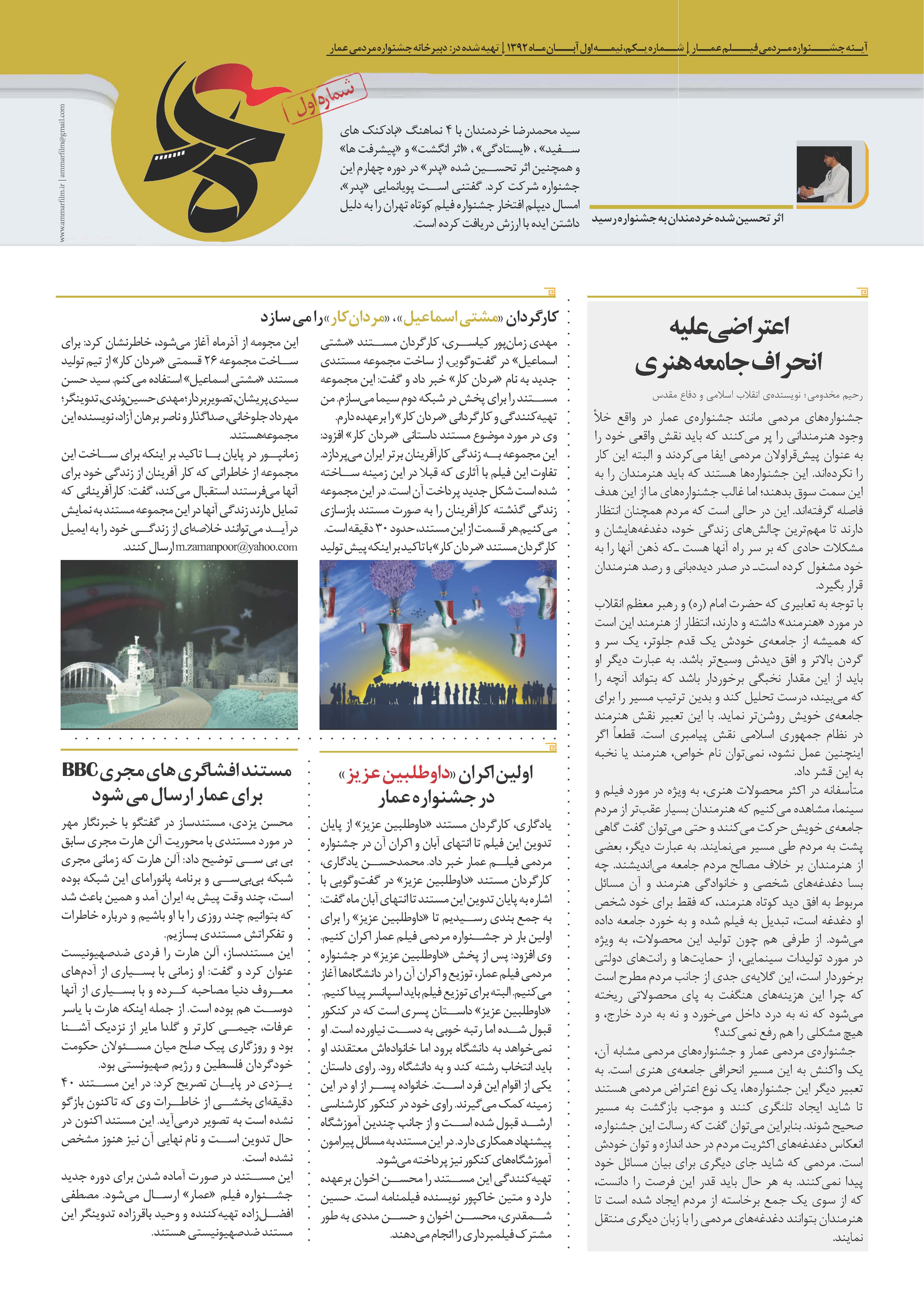 شماره اول نشریه آینه جشنواره مردمی فیلم عمار + دانلود