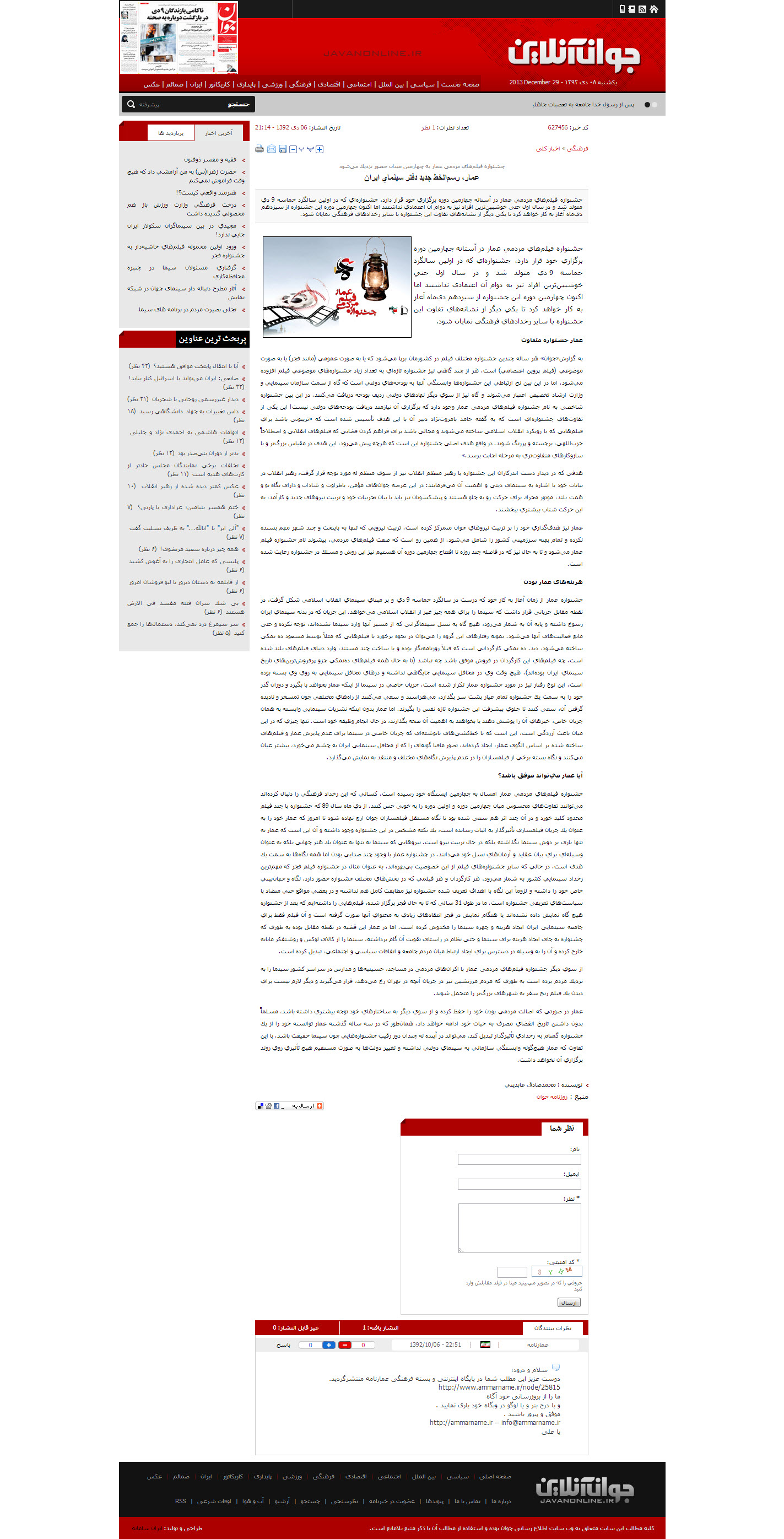 به گزارش عمار فیلم به نقل از جوان آنلاین جشنواره فیلمهای مردمی عمار در آستانه چهارمین دوره برگزاری خود قرار دارد ، جشنوارهای که در اولین سالگرد حماسه 9 دی متولد شد و در سال اول حتی خوشبینترین افراد نیز به دوام آن اعتمادی نداشتند اما اکنون چهارمین دوره این جشنواره از سیزدهم دیماه آغاز به کار خواهد کرد تا یکی دیگر از نشانههای تفاوت این جشنواره با سایر رخدادهای فرهنگی نمایان شود .