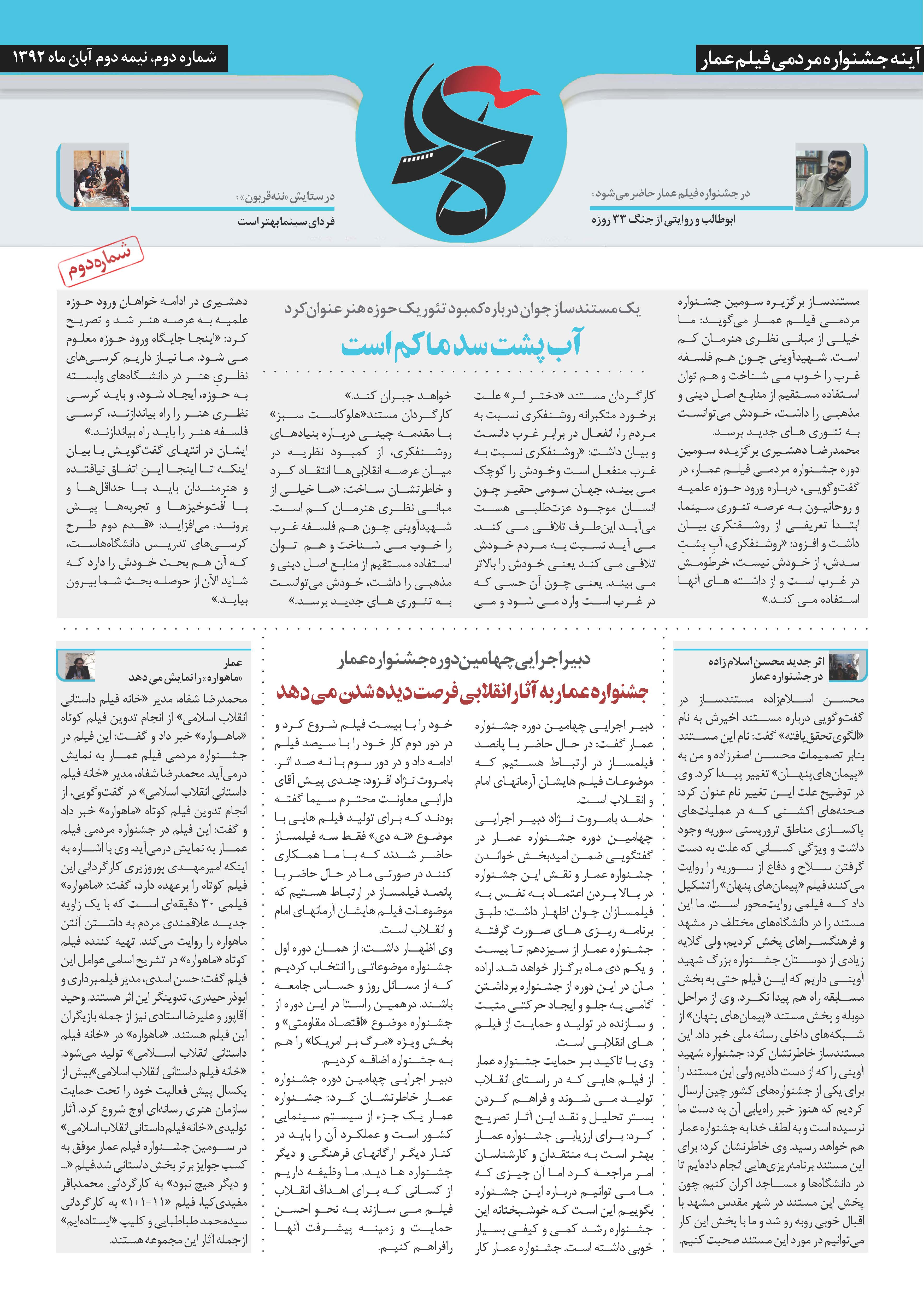 در این نشریه از نشست خبری جشنواره تا خاطرات اکران مردمی در ایذه می خوانید.
