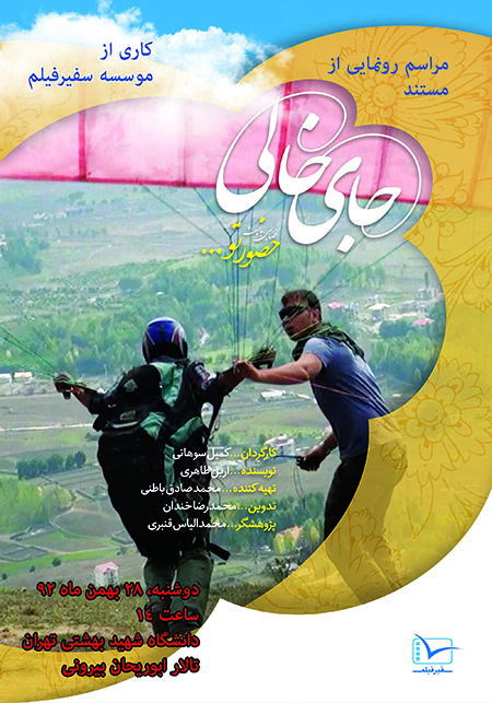 به گزارش سفیرفیلم ، دوشنبه ۲۸ بهمن ماه ۹۲ مراسم رونمایی از مستند «جای خالی» ، آخرین ساخته سفیرفیلم پیرامون فرهنگ عمومی برگزار می گردد.